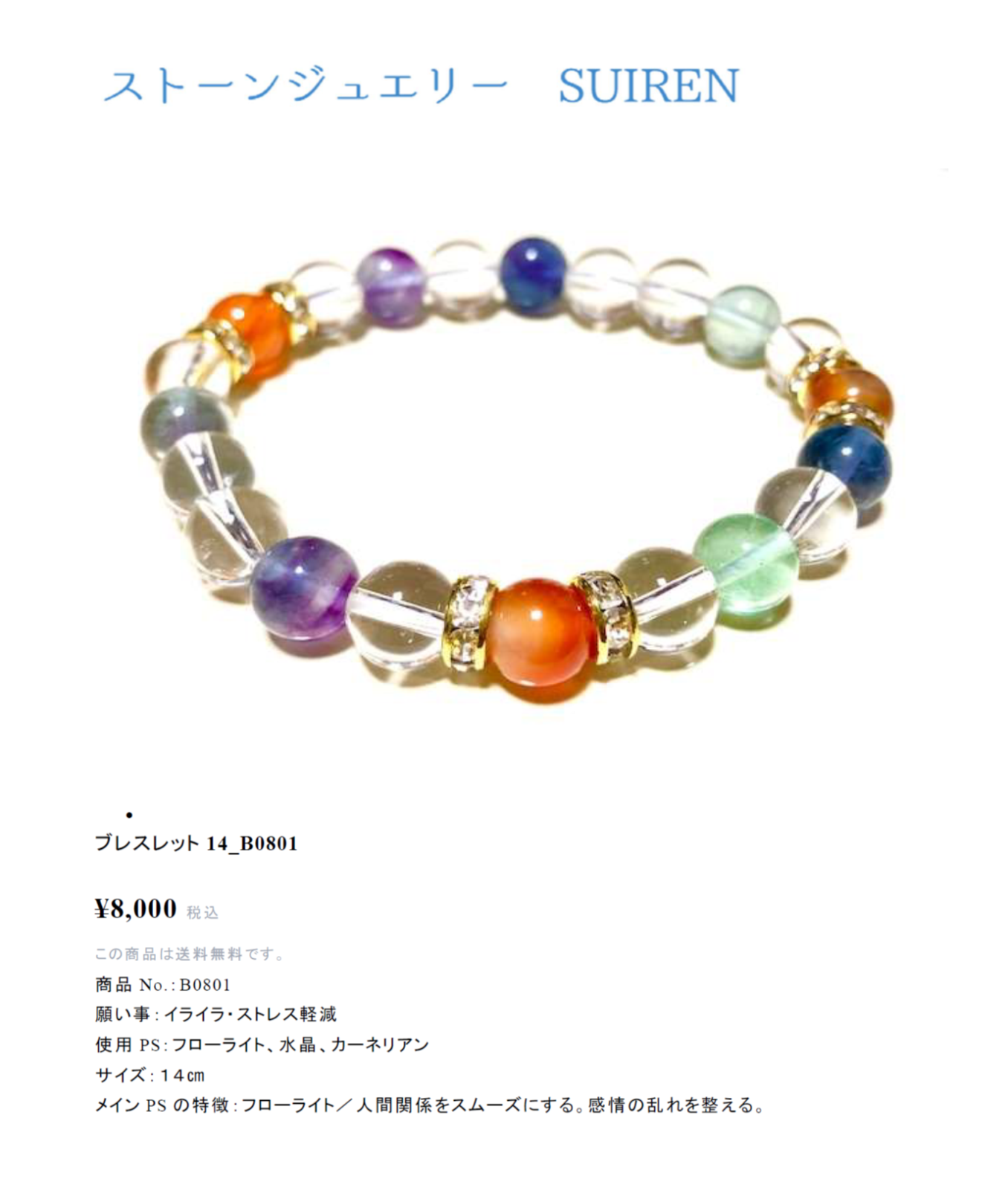 お店の方へ直接来ていただいている方は、パワーストーンアクセサリーを実際に手にしていただいて購入されておりますが、遠方の方や、お店になかなか忙しくてご来店いただけない方にも、パワーストーンのすばらしさを感じていただけるようにと、BASEを利用したネットショップ「ストーンジュエリー SUIREN」を開設し、パワーストーンアクセサリーをご購入できるようにしております。