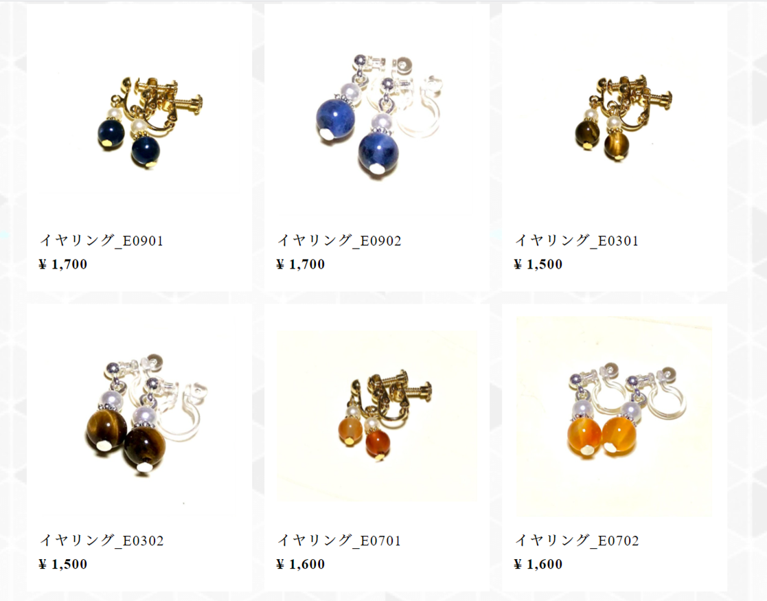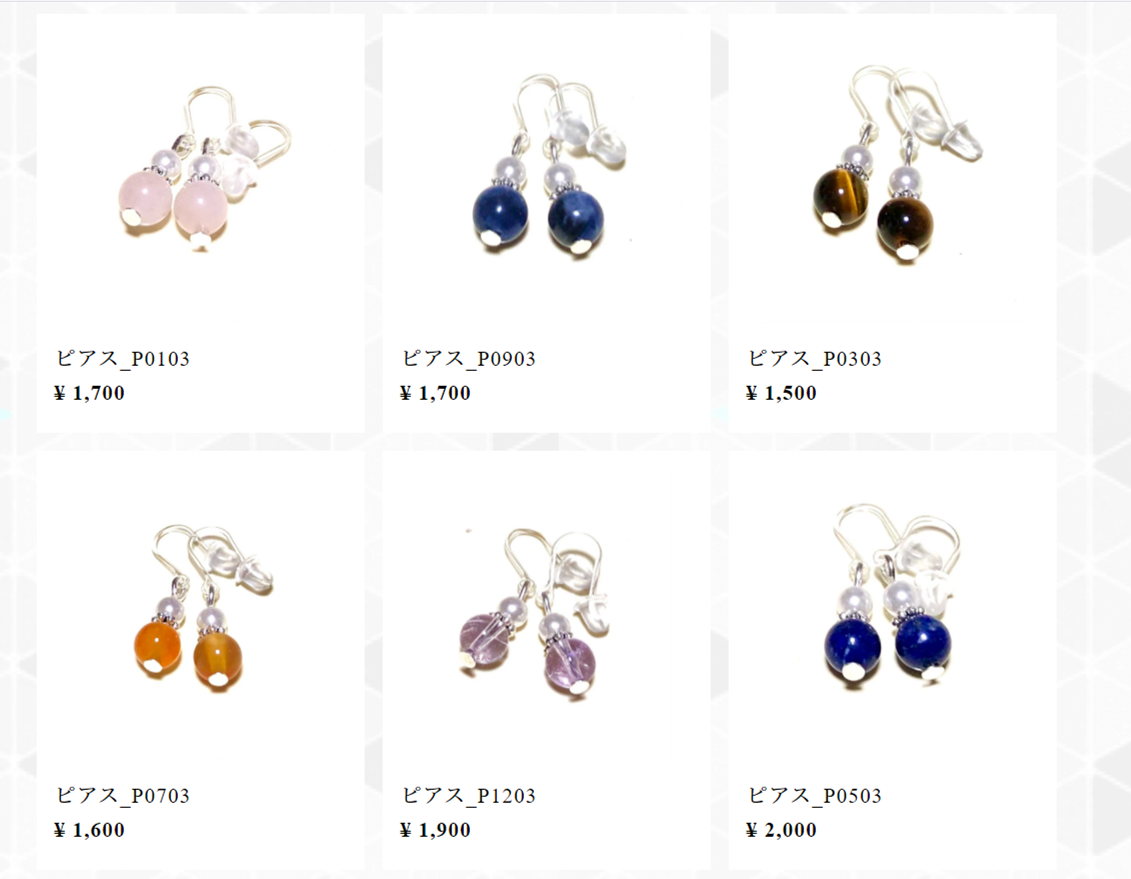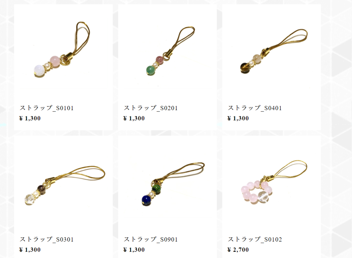 ネットショップでは、ブレスレット、イヤリング、ピアス、ストラップ、ピアス等、品揃えしております。
